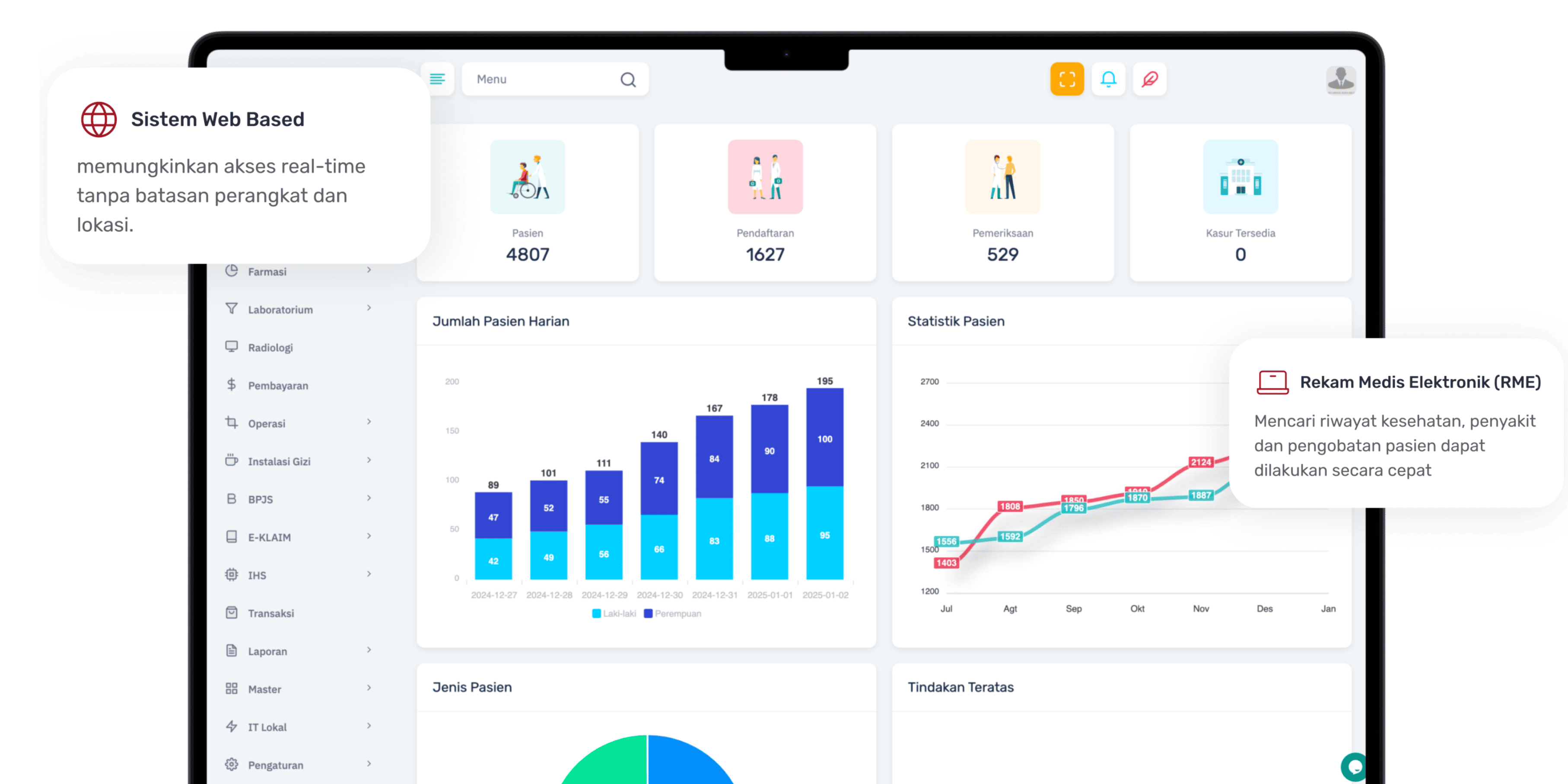 Pantauan data operasional rumah sakit dapat diakses kapan saja melalui perangkat apa pun.