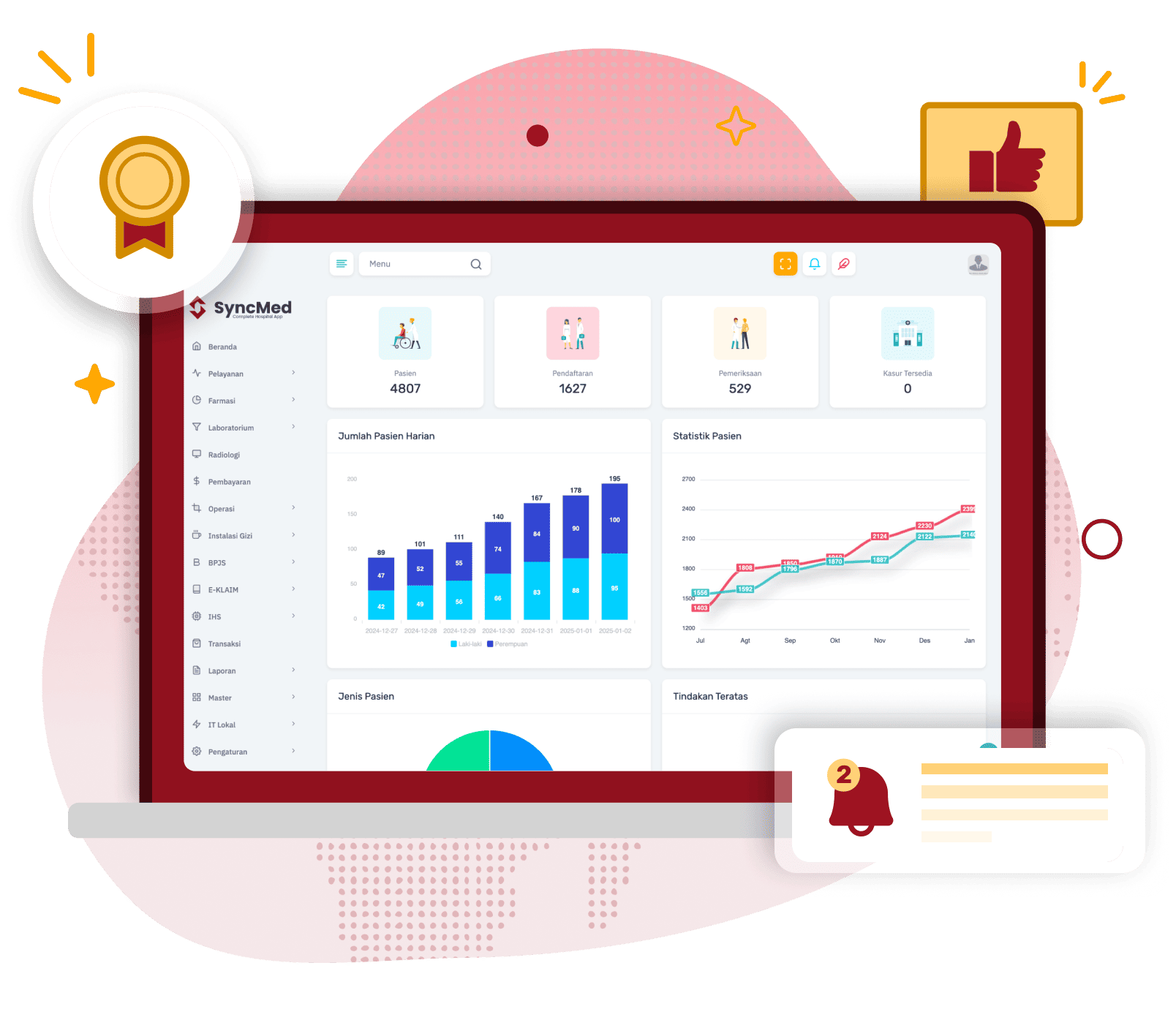 Memudahkan rumah sakit memantau stok, mengelola logistik, dan meningkatkan efisiensi operasional